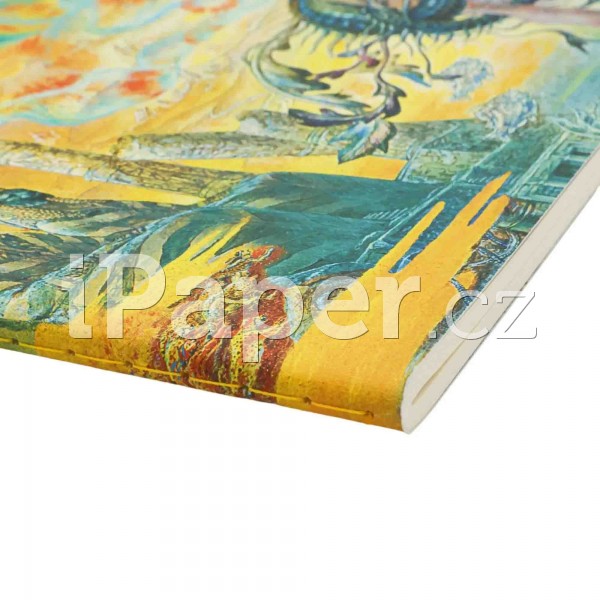 - Sešívaná vazba sedlovým stehem pro vyšší pevnost a ploché otevírání.